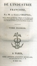 CHAPTAL Jean-Antoine, De l’industrie française, Paris, A. Raynouard,